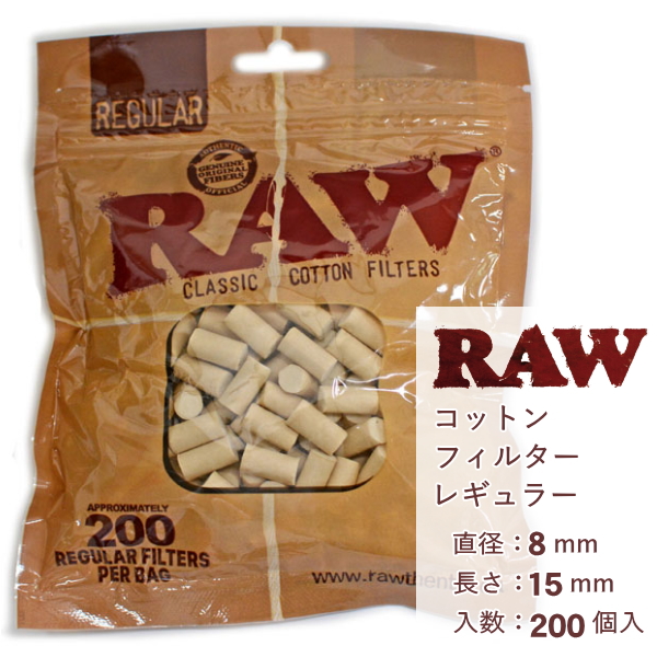 RAW ロウ コットンフィルター レギュラー 200個入 直径8mm 長さ15mm 手巻きたばこ 手巻きタバコ フィルター