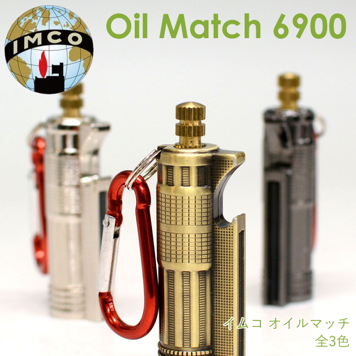 Oil Match 6900アウトドアなどで真価を発揮する、カラビナ付きで持ち運びに便利なイムコブランドのオイルマッチです。