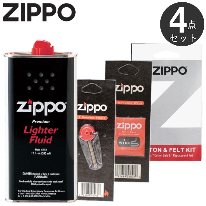 ZIPPO 消耗品 4点セット ZIPPOオイル大缶355ml フリント ウィック コットン 純正 レフィル メンテナンス セット お得