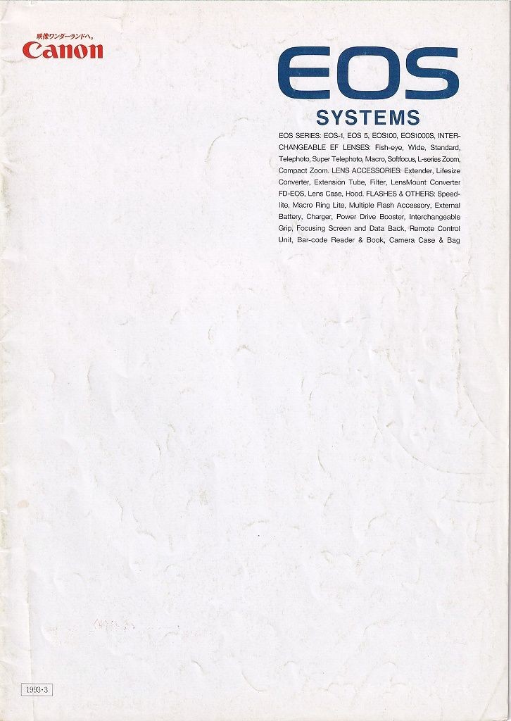 Canon キヤノンEOS Systems 総合カタログ '93.9 (中古美品)です
