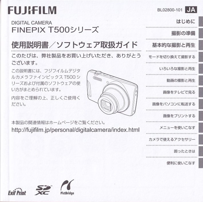Fujifilm フジフイルム FINEPIX T500 の 使用説明書/ソフトウェア取扱ガイド+CDロム付(新同美品)