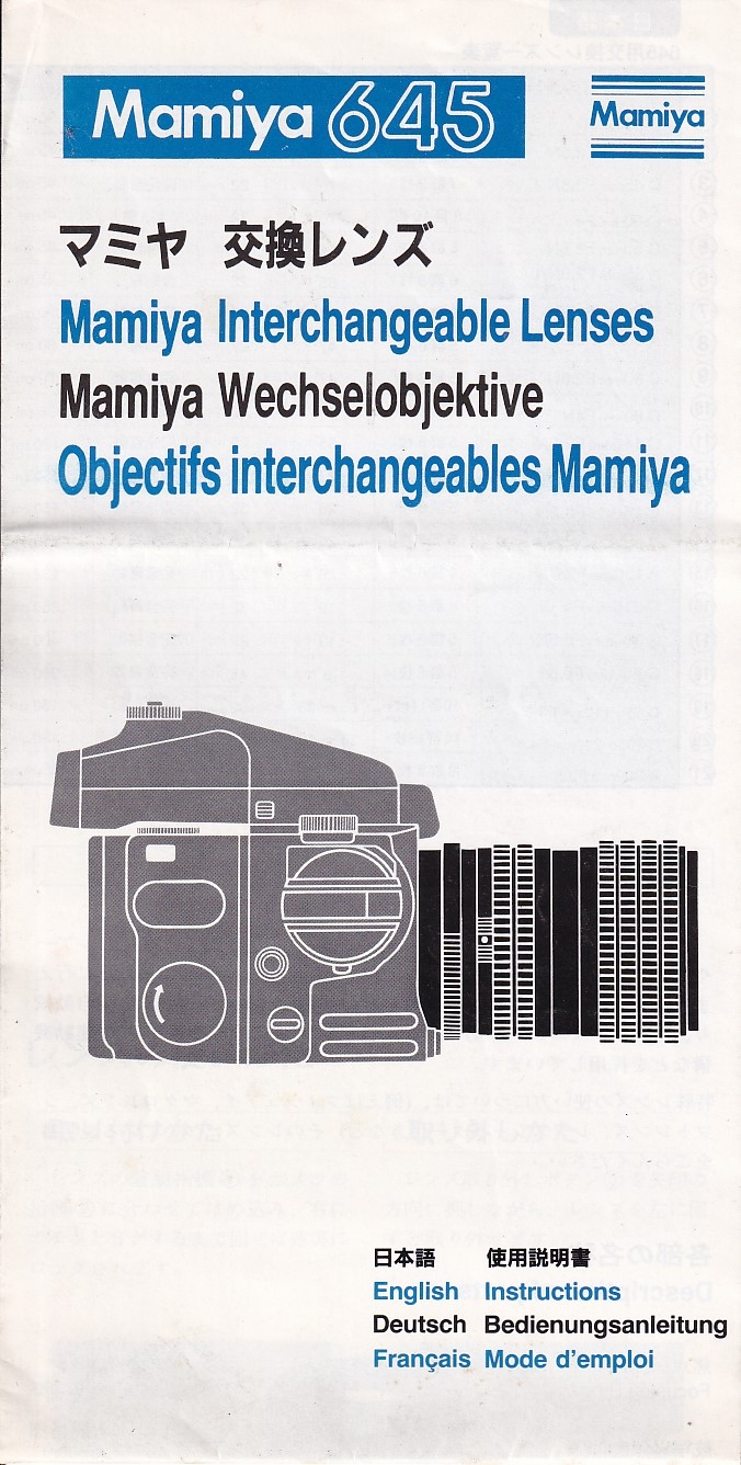 Mamiya マミヤ 645 用 交換 レンズ の 使用説明書/オリジナル版(中古美品 )