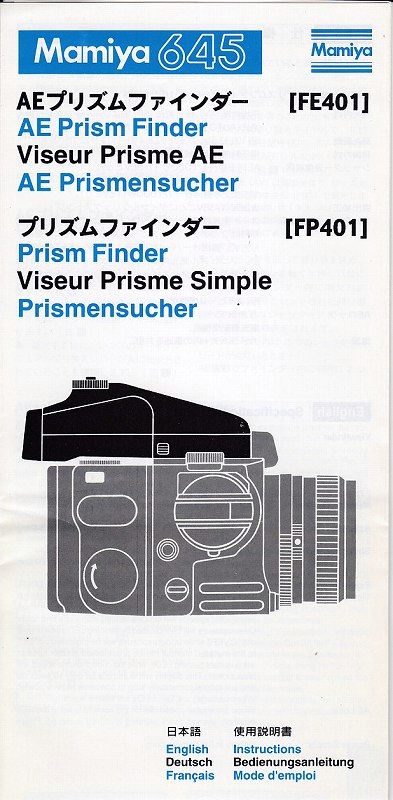 Mamiya マミヤ 645 AEプリズム・プリズムファインダー の 使用説明書/オリジナル版(美品中古)