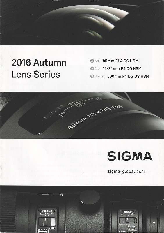シグマ SIGMA レンズ/2016 Autumn Lens Series の カタログ/2016.10(未使用美品)
