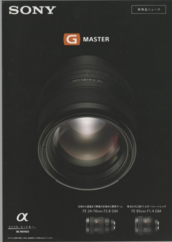 ソニー SONY Gマスターレンズ/EF24〜70mm2.8GM/EF 85mm f1.4GM の カタログ/新製品news/2016.2(未使用美品)です