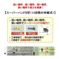 | タイプ | I型(固定) | II型(伸縮式) | | 長さ | 1,550mm | 1,870〜3,070mm | | 重量 | 750g | 1,200g | | パイプの太さ | 22mm | 22×25(16角)mm | | ハサミの材厚 | 3.0mm | | 伸縮 | なし | 13段伸縮 | | グリップ | スライド回転式 ホールドグリップ | | 先端口幅 | 95mm | | 先端の材質 | ゴム | | 磁石 | 強力・普通各1ヶ | | 磁石の吊り能力(2ヶで) | 約700g | | ハンドル回転機能 | 140度回転 | | ハンドルロック機能 | あり | | セパレーター挟み | あり | | 釘穴(釘で刺して取る) | あり | |