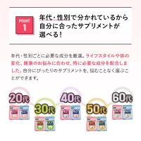 変化する体を若々しく保ちたい50代女性のための成分を厳選し、ワンパックに。サプリメントをこれから摂ろうと思っている人、摂り方のわからない方におすすめ!年代別・性別に適したサプリメントを、ワンパックにいたしました。どなたでも、自分にあったサプリメントを簡単に選ぶことができます。