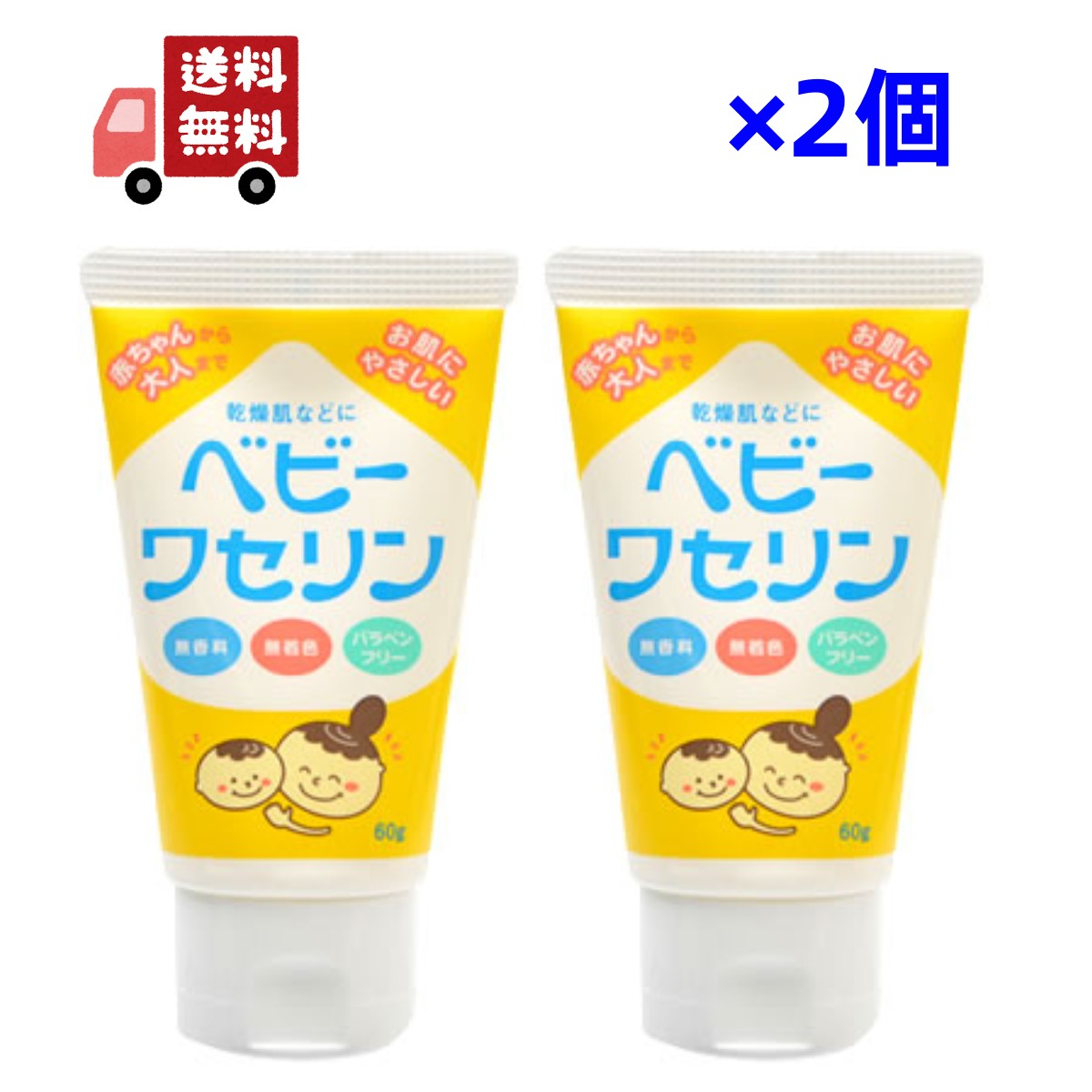 2個セット ベビーワセリン 60g健栄製薬 赤ちゃん ベビー 子供 リップ 保湿 乾燥肌 無香料 無着色 パラベンフリー