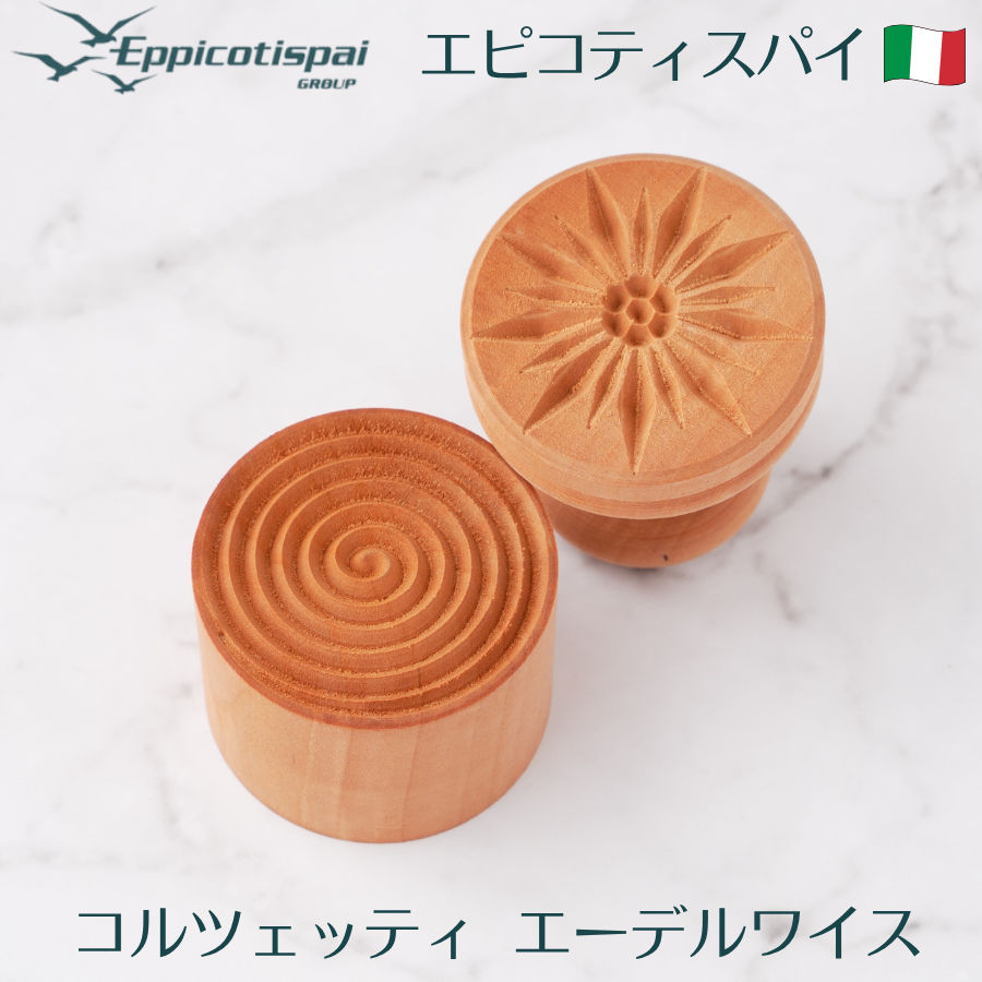 この平状の円形パスタには専用の木製スタンプで押印された模様があります。
