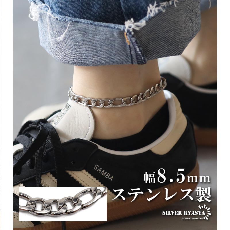 ステンレス チェーンアンクレット フィガロチェーンアンクレット シルバー 幅8.5mm シンプルアンクレット 足輪 足首 金属アレルギー対応