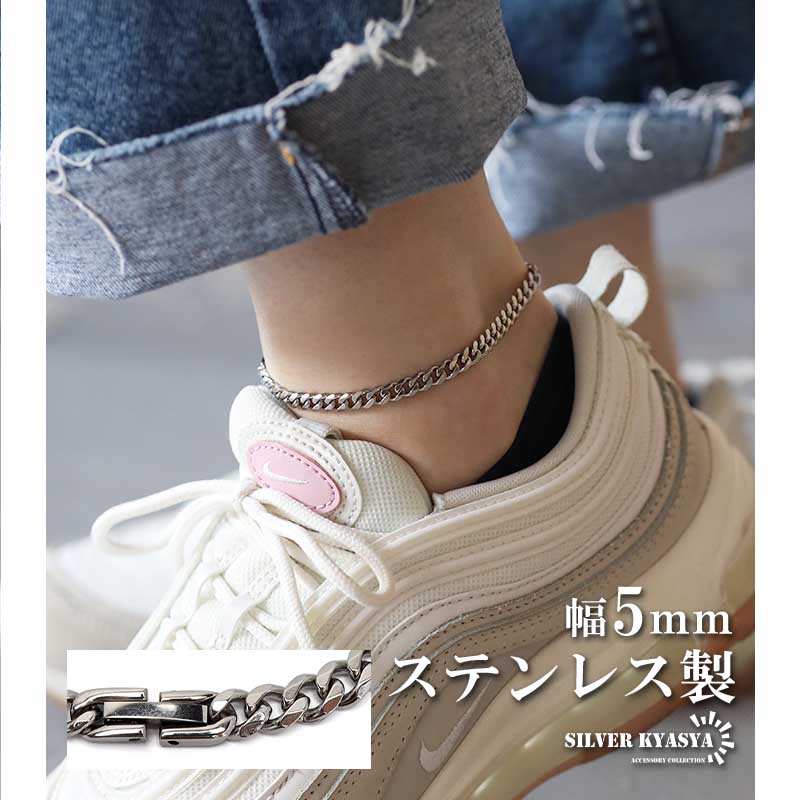 ステンレス チェーンアンクレット 喜平チェーンアンクレット シルバー 幅5mm シンプルアンクレット 足輪 足首 金属アレルギー対応 爆買