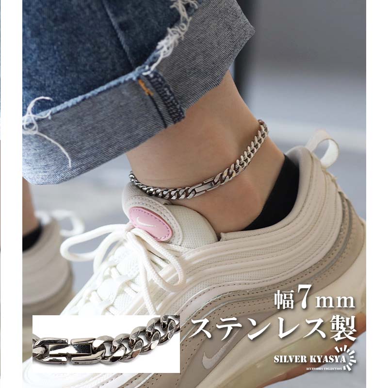 ステンレス チェーンアンクレット 喜平チェーンアンクレット シルバー 幅7mm シンプルアンクレット 足輪 足首 金属アレルギー対応 爆買