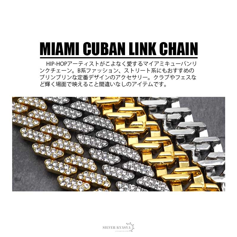HIP-HOPアーティストがこよなく愛するマイアミキューバンリンクチェーン。B系ファッション、ストリート系にもおすすめのブリンブリンな定番デザインのアクセサリー。クラブやフェスなど輝く場面で映えること間違えなしのアイテムです。