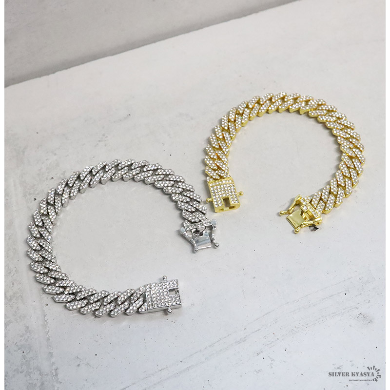 喜平チェーンブレスレット ブリンブリン パヴェ CZ マイアミキューバンリンク HIPHOP系 B系 ストリート ラップ ゴールド シルバー 金 銀