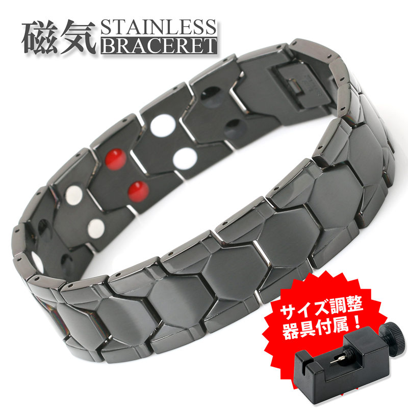 磁気ブレスレット メンズ ステンレス ブラック 黒 マッド つや消し 金属アレルギー対応 磁力 磁石 316L 調整器具付属 爆買