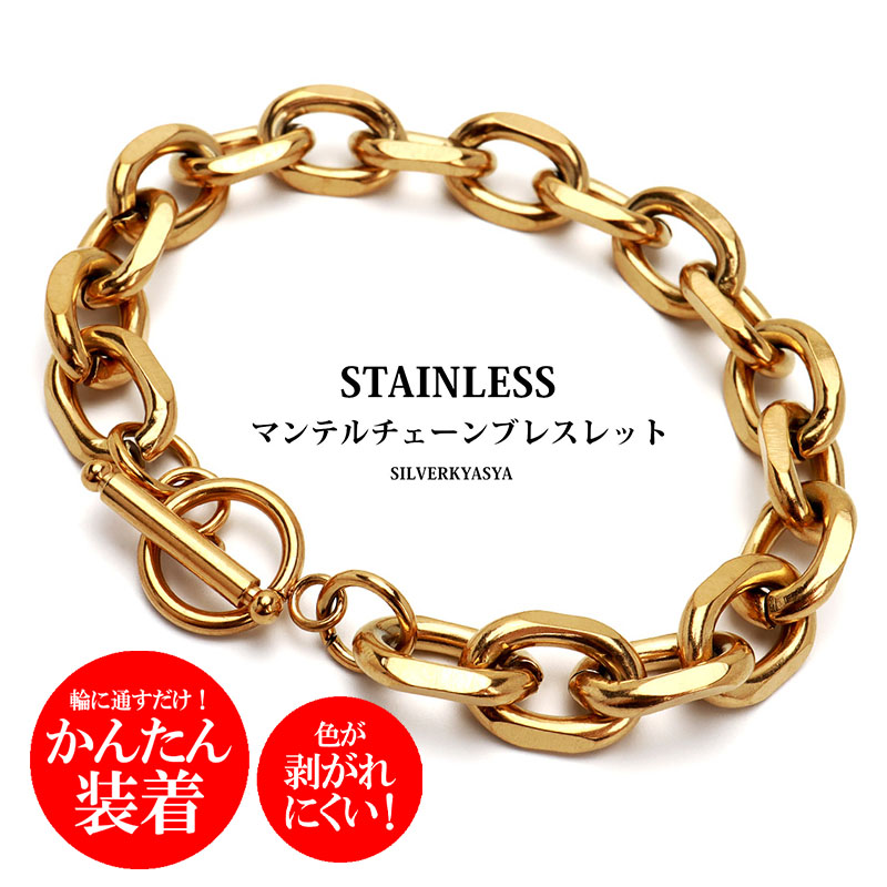 ステンレス チェーンブレスレット メンズ レディース マンテル ブレスレット ゴールド 金色 gold シンプル
