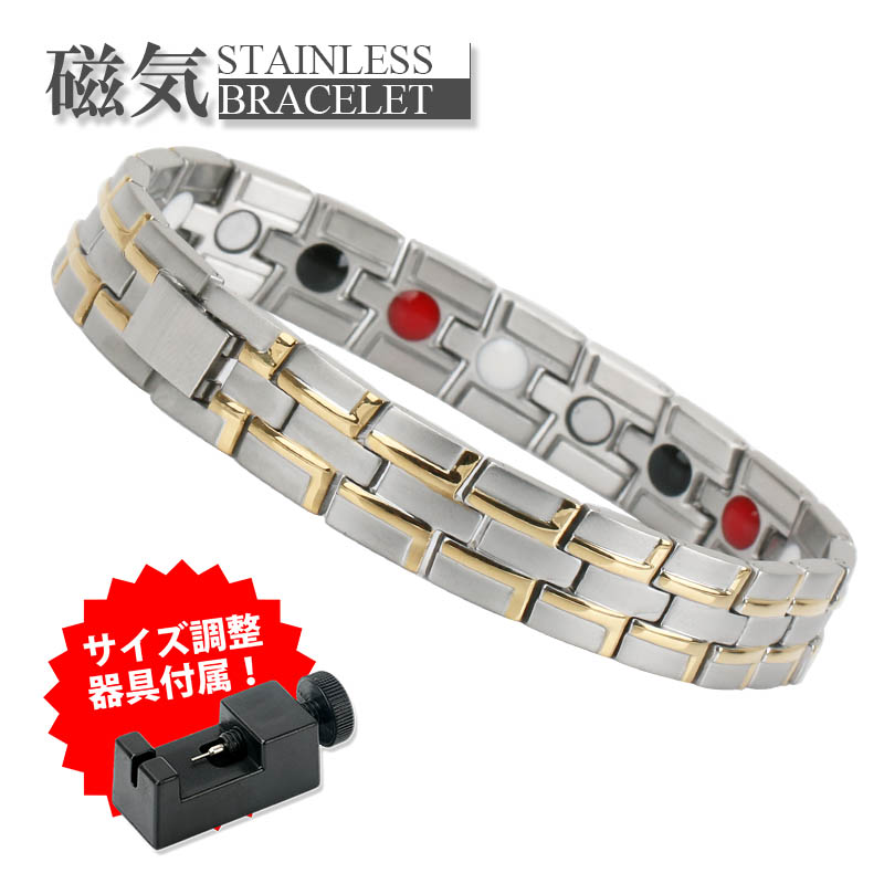 ステンレス 磁気ブレスレット シルバー ゴールドブレスレット 長さ調整道具付属 爆買