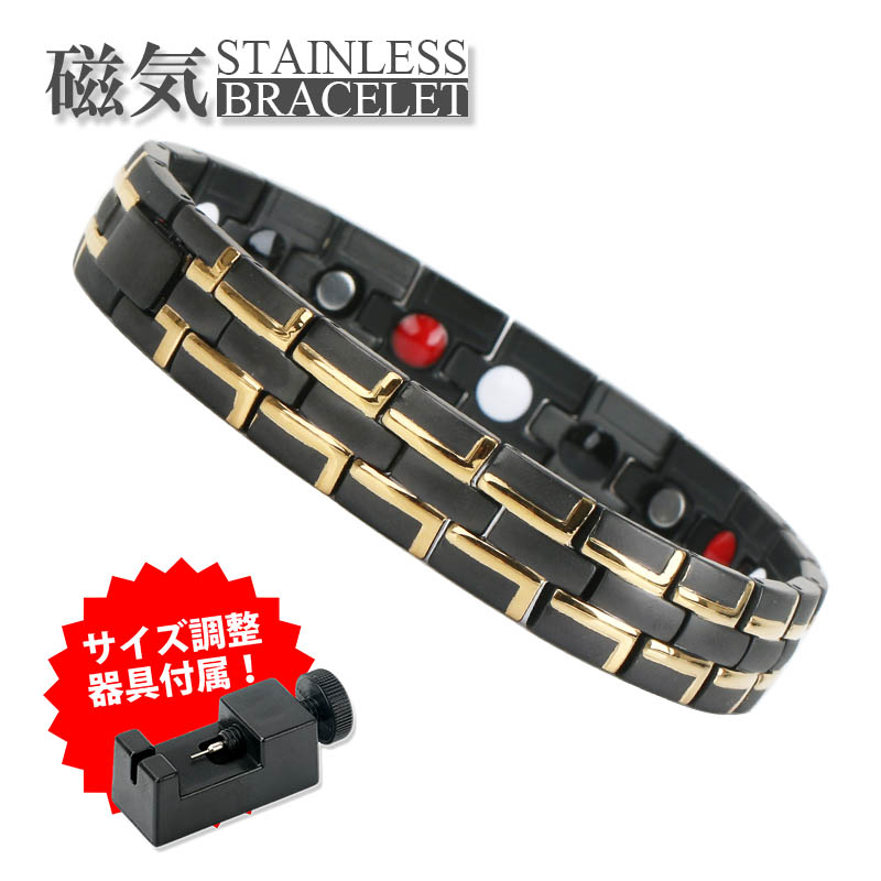 ステンレス 磁気ブレスレット ブラック ゴールドブレスレット 長さ調整道具付属 爆買