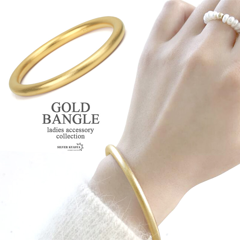 シンプルバングル ゴールドバングル ブレスレット 18K つや消し マット 華奢 プレーンバングル 金 リストバンド