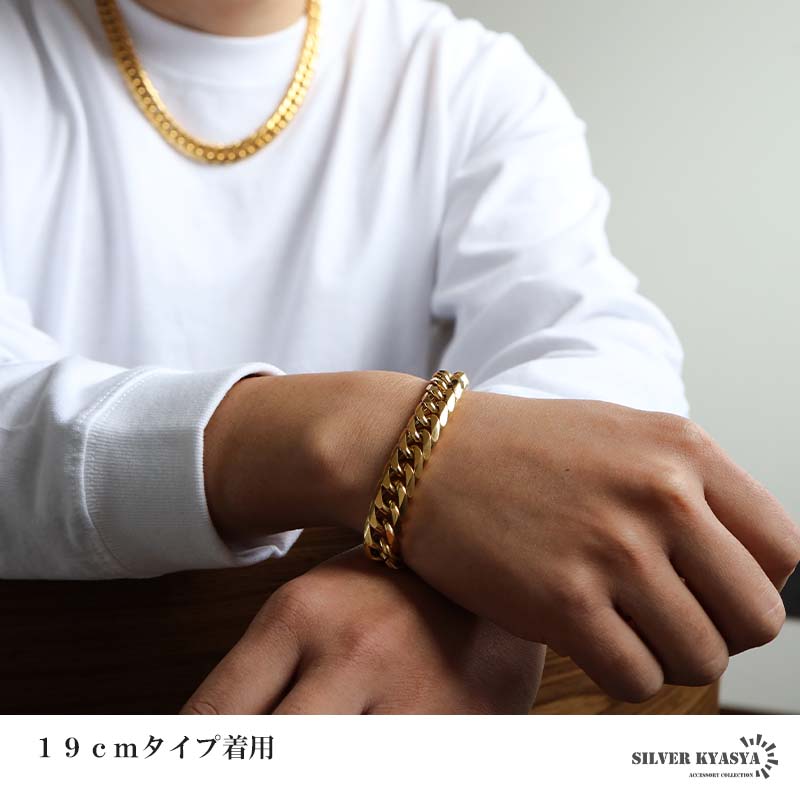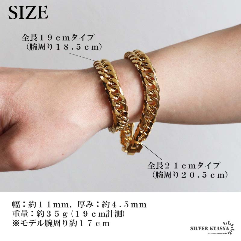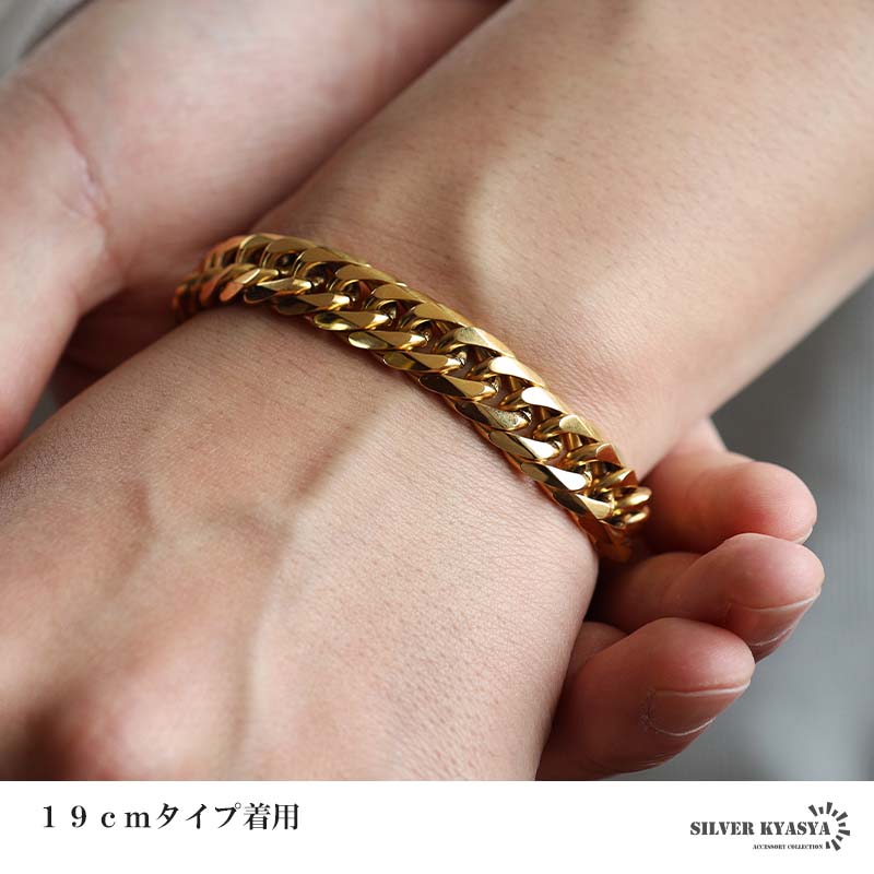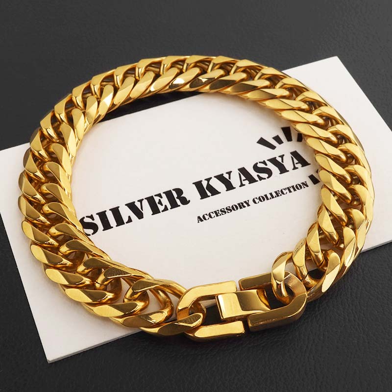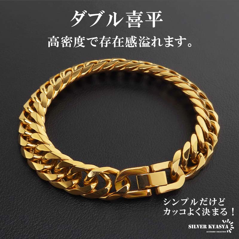 新!リニューアル 短いサイズ追加 ステンレス 定番 ダブル喜平ブレスレット 幅11mm 太め チェーンブレスレット メンズ ゴールド 18KGP 金属アレルギー対応 爆買