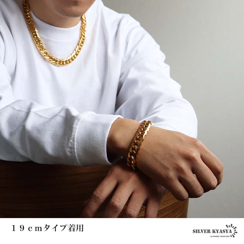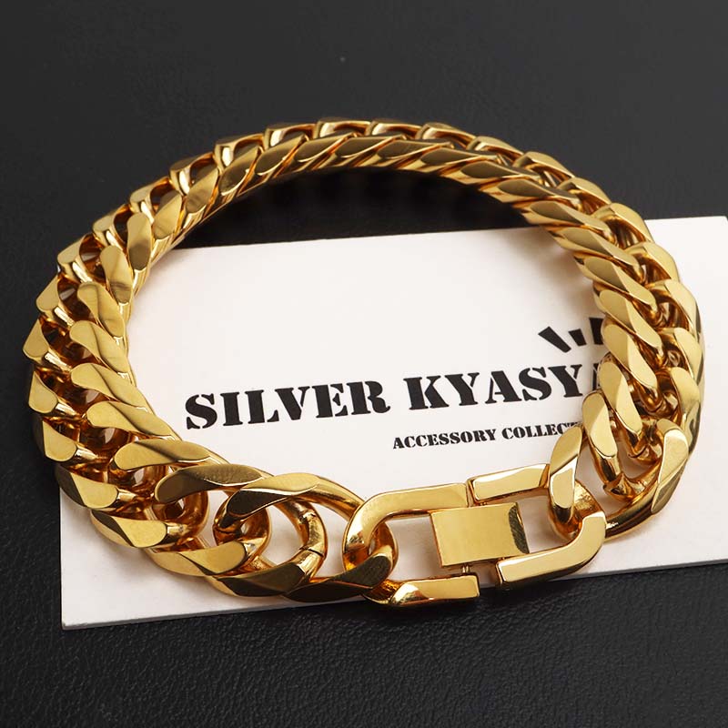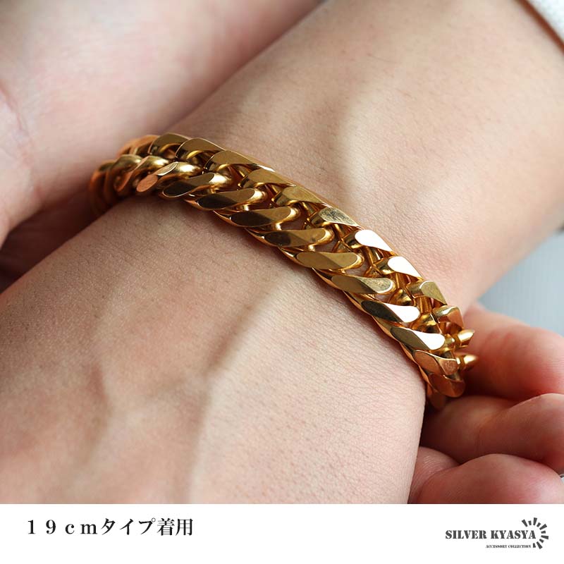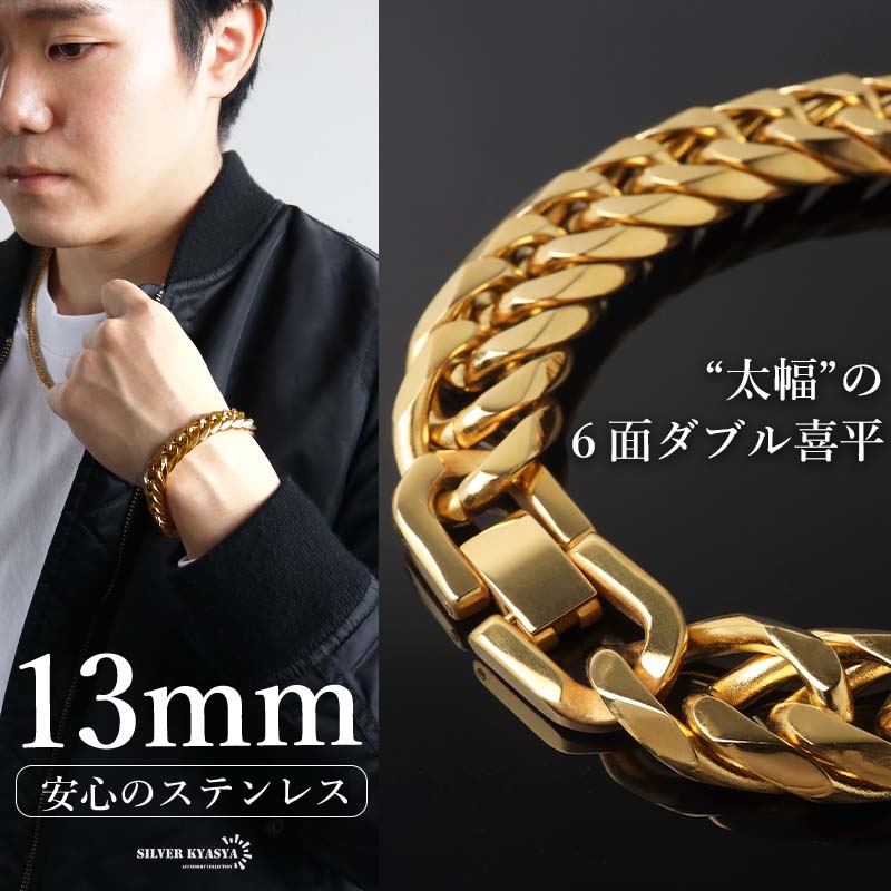 新!リニューアル 短いサイズ追加 ステンレス 定番 ダブル喜平ブレスレット 幅13mm 太め チェーンブレスレット メンズ ゴールド 18KGP 金属アレルギー対応 爆買