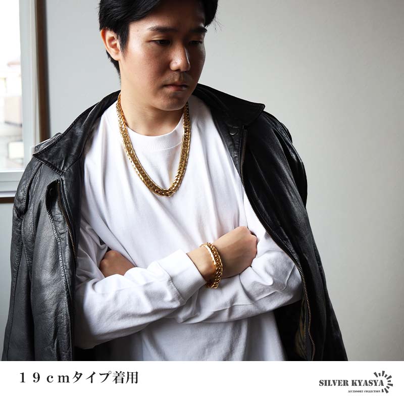 密度が濃く圧倒的な存在感が人気のダブル喜平ブレスレット。6面カットの繊細な光の反射が美しいチェーンアイテムです。ステンレス製なのでつけっぱなしでも問題ございません。チェーンの長さは全2サイズからお選びいただけます。