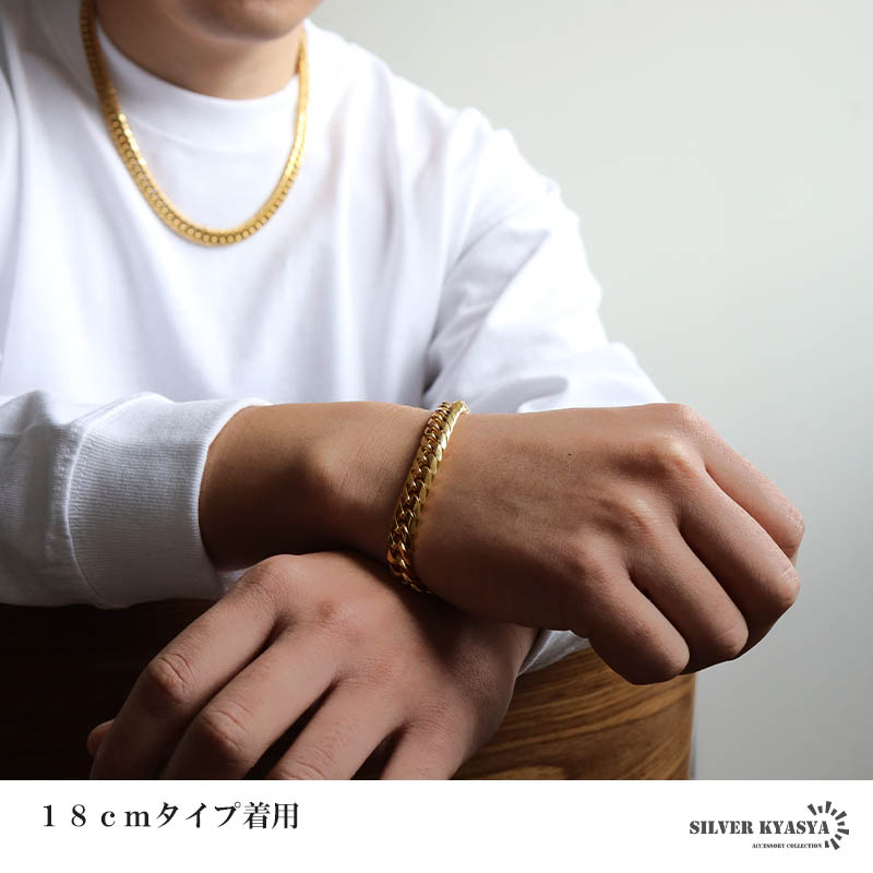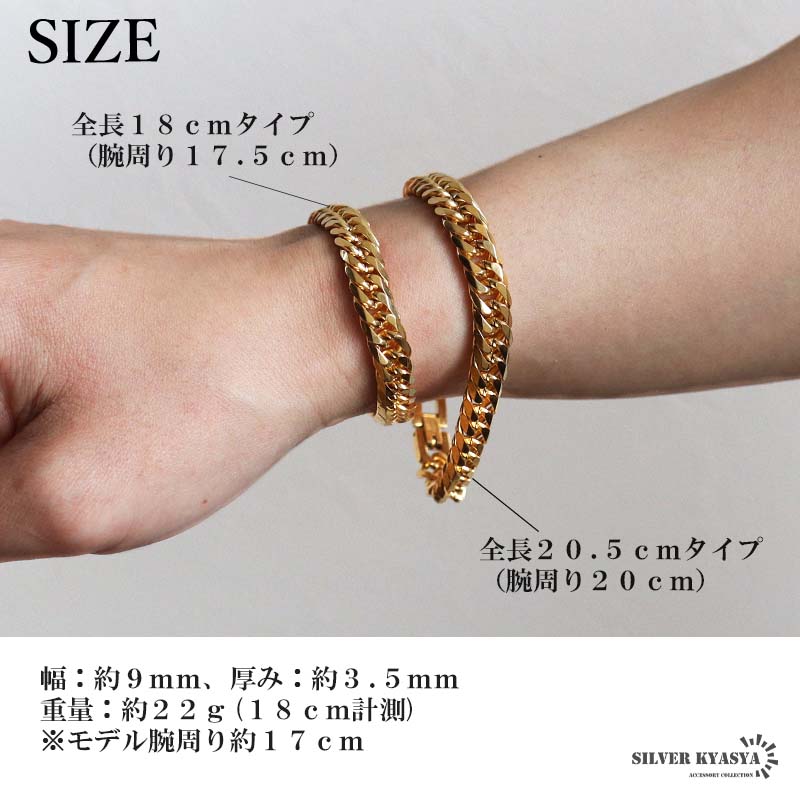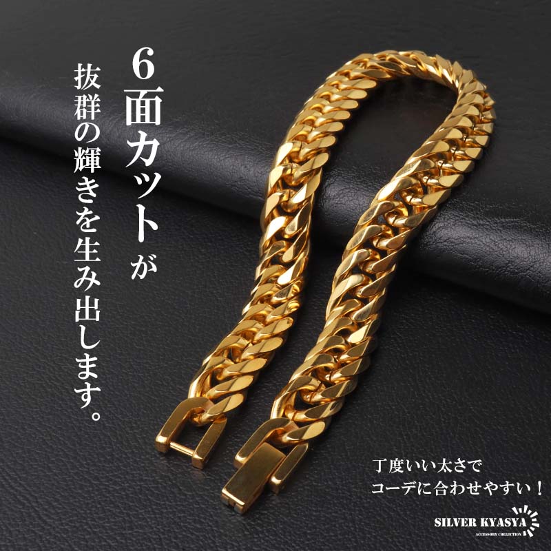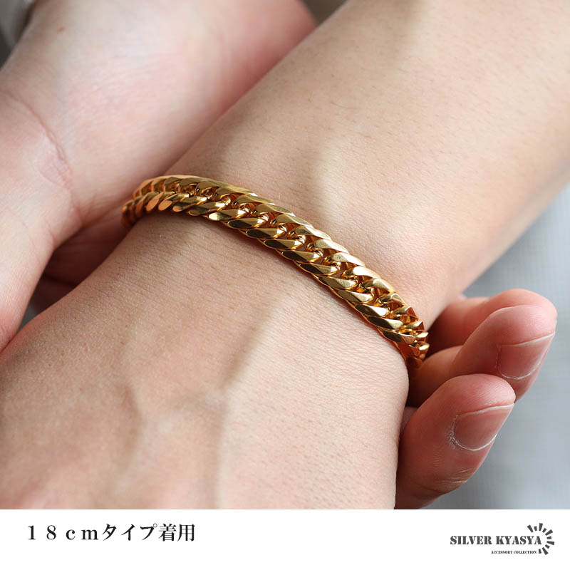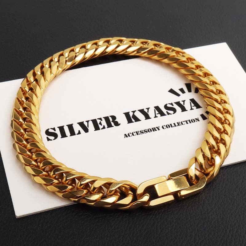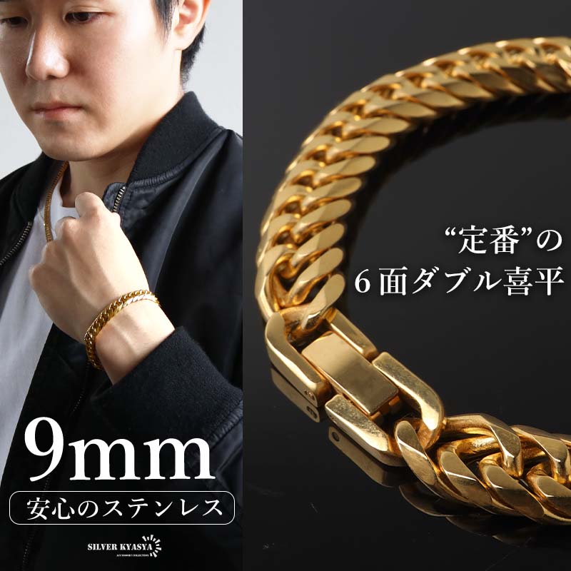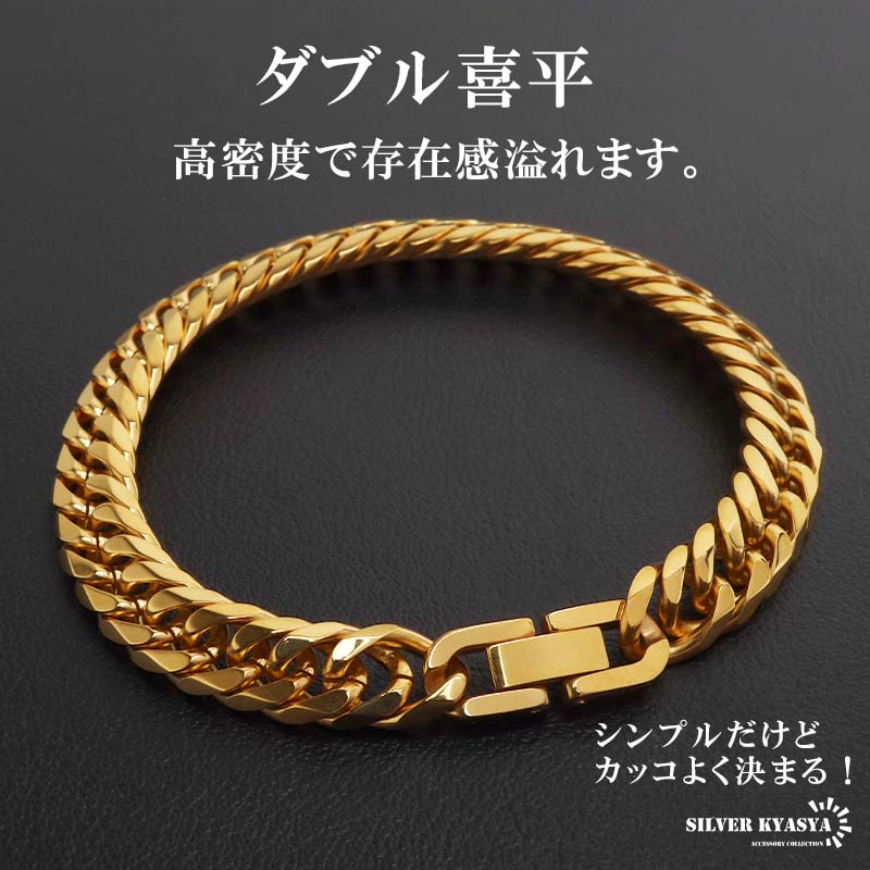 新!リニューアル 短いサイズ追加 ステンレス 定番 ダブル喜平ブレスレット 幅9mm 太め チェーンブレスレット メンズ ゴールド 18KGP 金属アレルギー対応 爆買