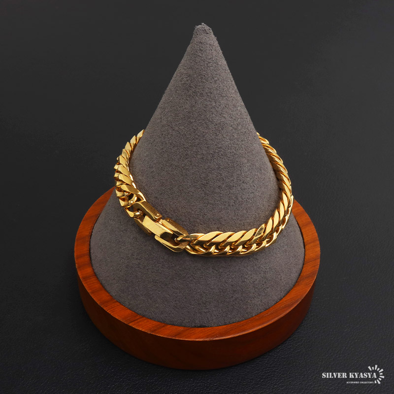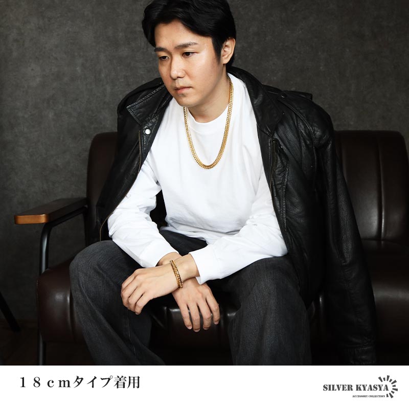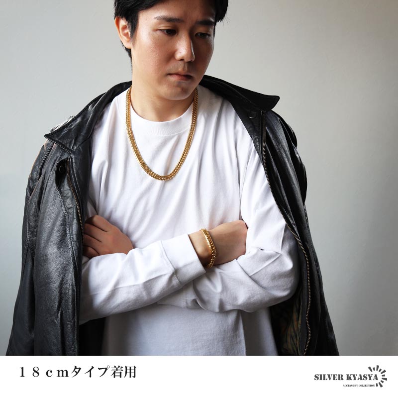 密度が濃く圧倒的な存在感が人気のダブル喜平ブレスレット。6面カットの繊細な光の反射が美しいチェーンアイテムです。ステンレス製なのでつけっぱなしでも問題ございません。チェーンの長さは全2サイズからお選びいただけます。