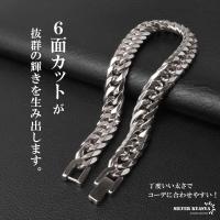 密度が濃く圧倒的な存在感が人気のダブル喜平ブレスレット。6面カットの繊細な光の反射が美しいチェーンアイテムです。ステンレス製なのでつけっぱなしでも問題ございません。チェーンの長さは全2サイズからお選びいただけます。