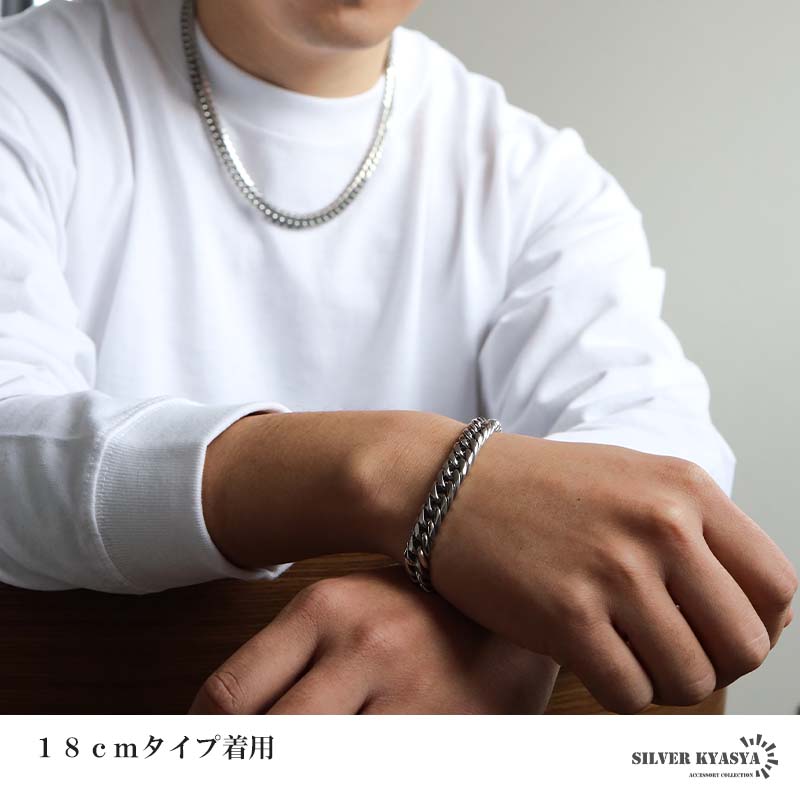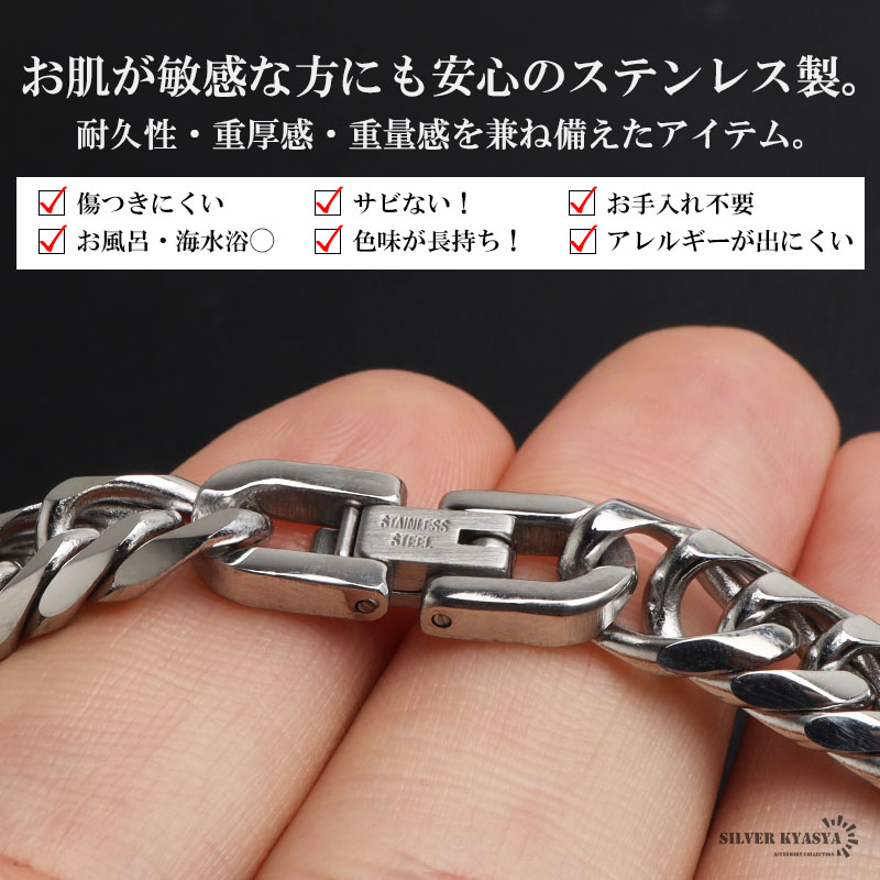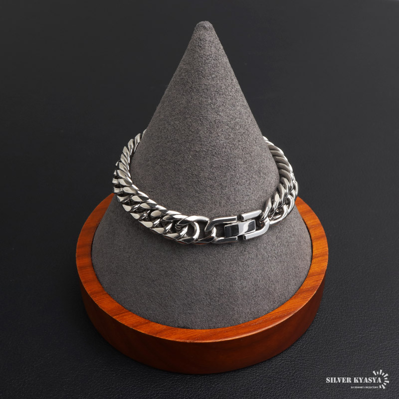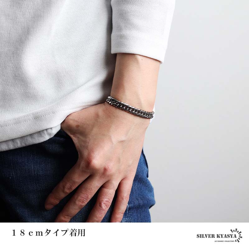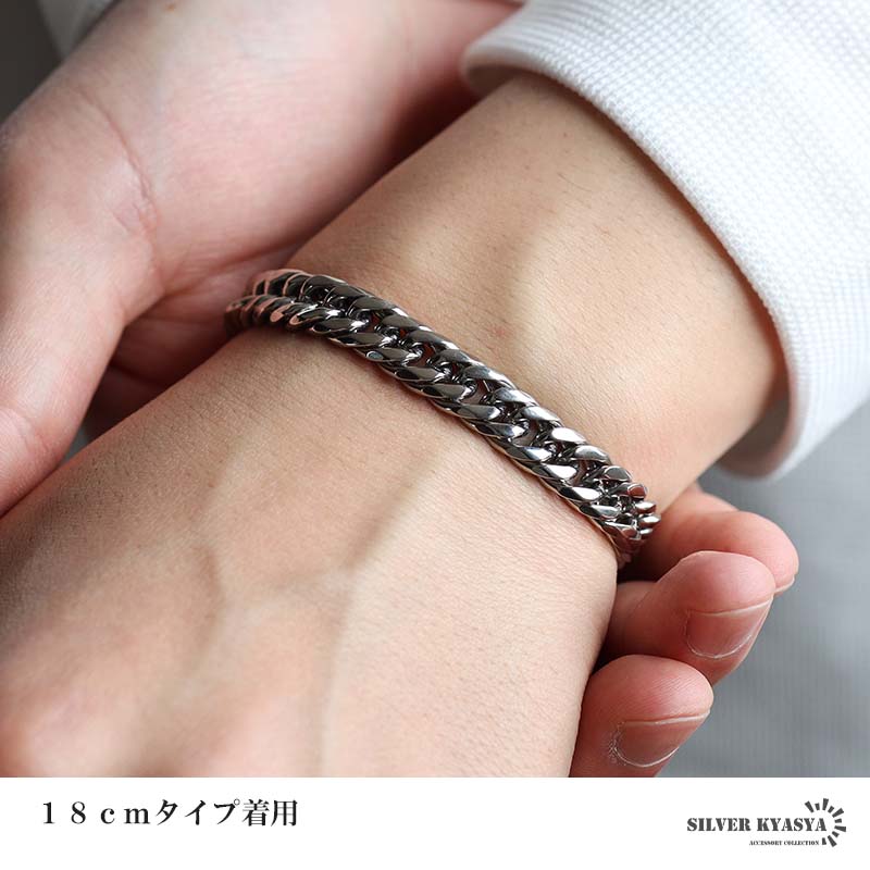 新!リニューアル 短いサイズ追加 ステンレス 定番 ダブル喜平ブレスレット 幅9mm 太め チェーンブレスレット メンズ シルバー 金属アレルギー対応 爆買