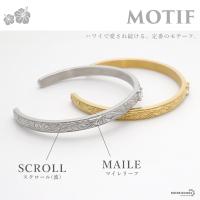 取り入れやすいシンプルな平打ちタイプのバングルにハワイの雰囲気ただようレリーフがありお洒落な仕上がり。