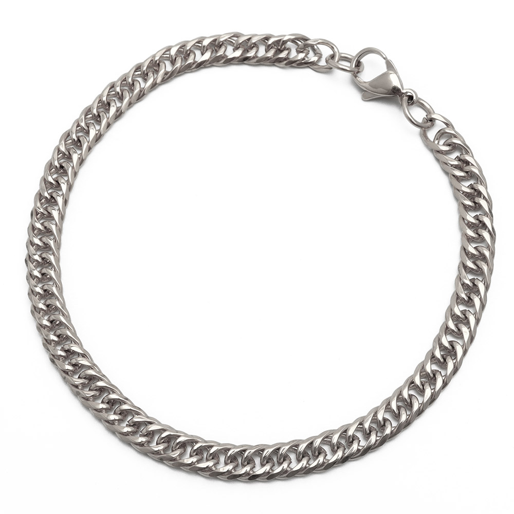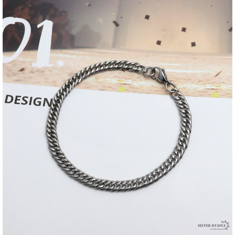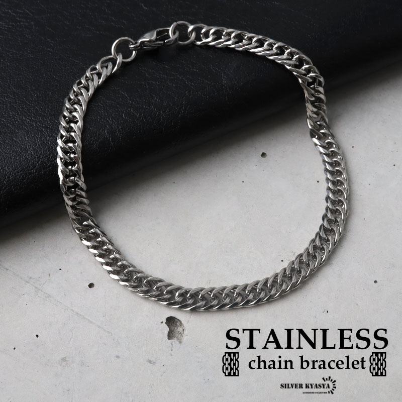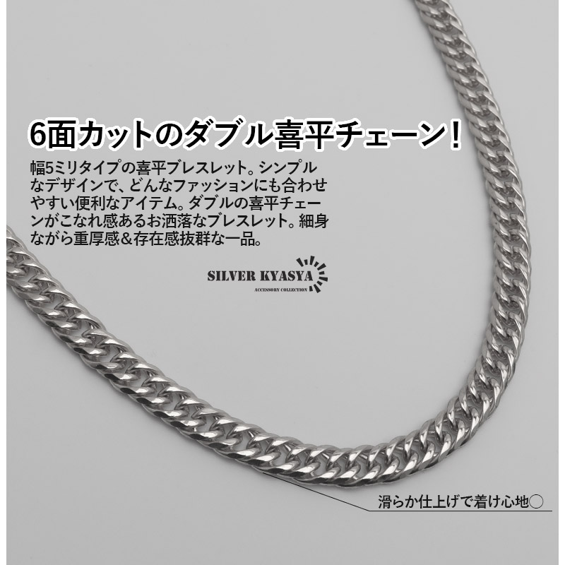 幅5mm ステンレス ダブル喜平チェーンブレスレット 6面カット シルバー 金属アレルギー 爆買