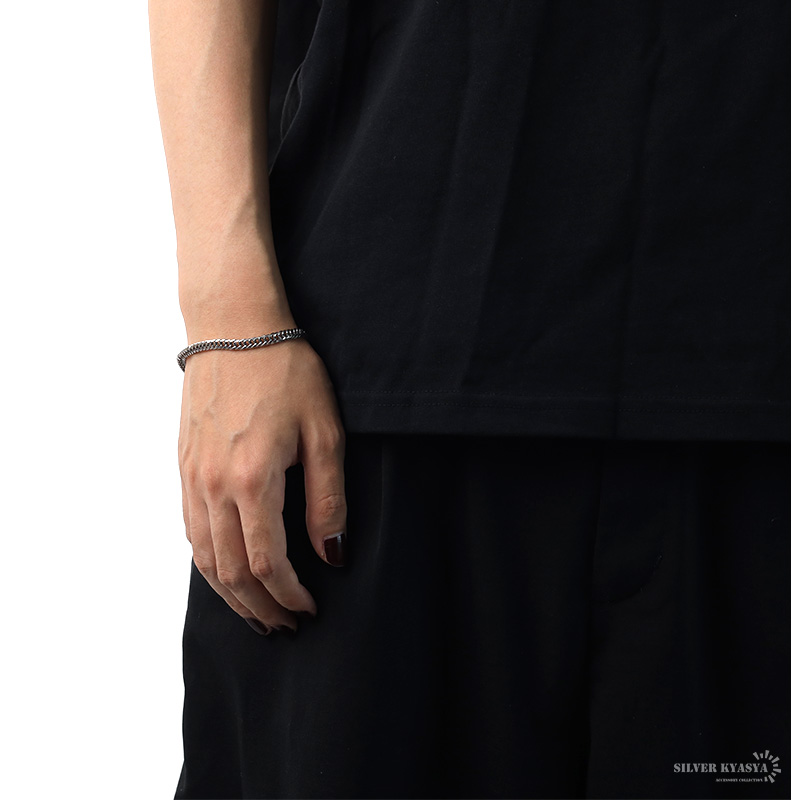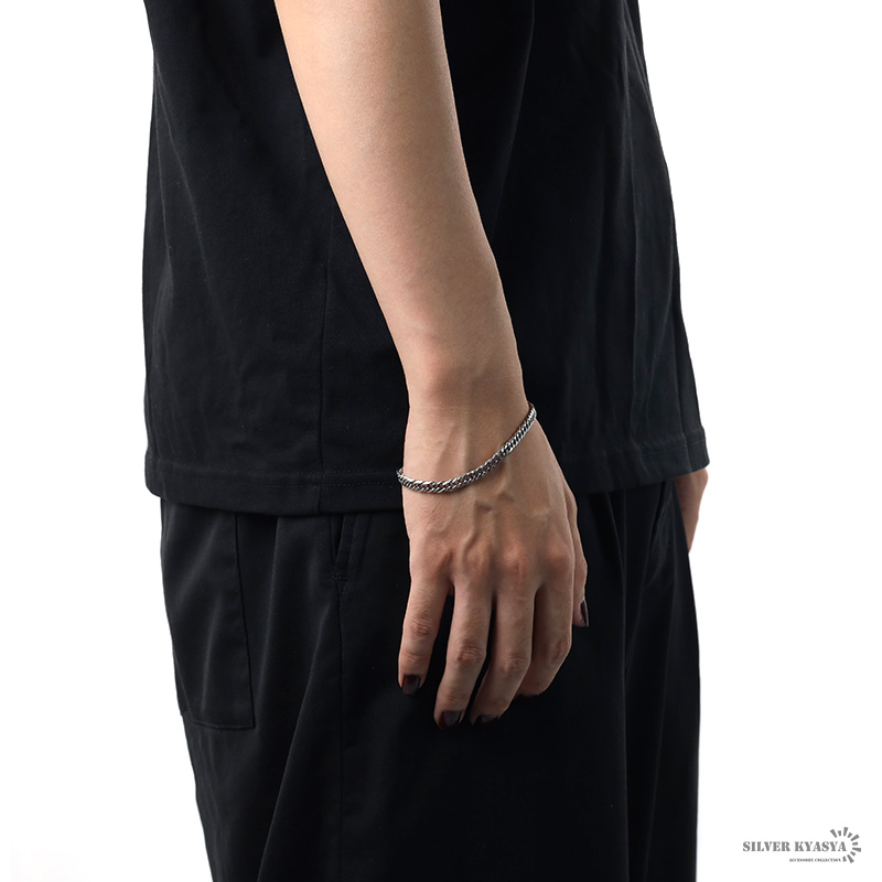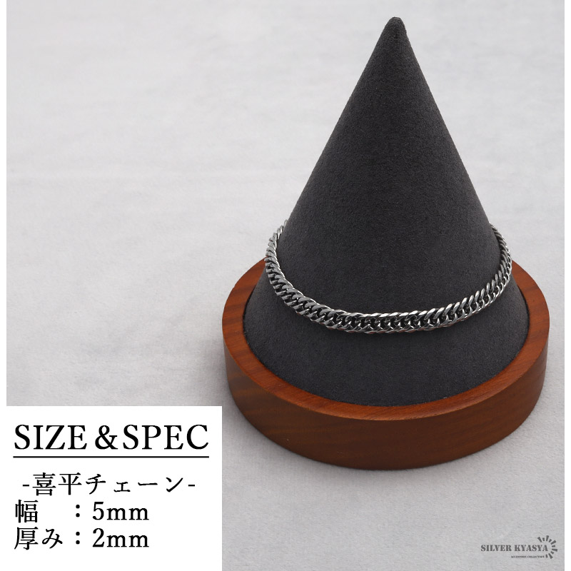 幅5ミリタイプの喜平ブレスレット。シンプルなデザインで、どんなファッションにも合わせやすい便利なアイテム。ダブルの喜平チェーンがこなれ感あるお洒落なブレスレット。細身ながら重厚感&存在感抜群な一品。