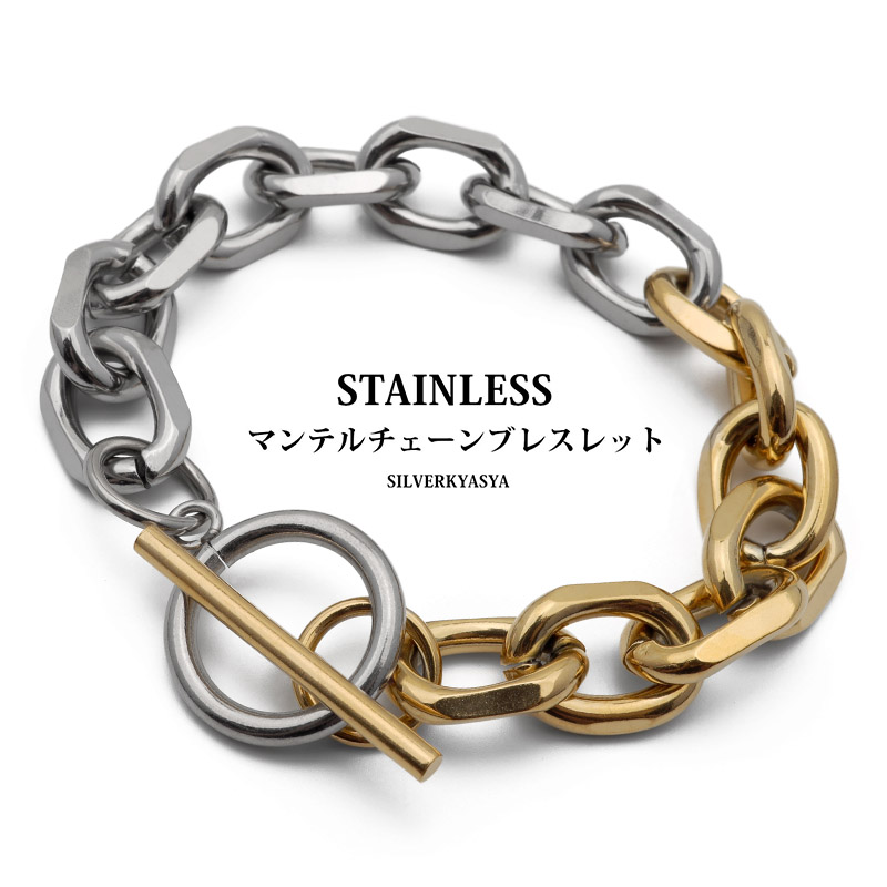 ブレスレット チェーンブレスレット メンズ 男性 シルバー ゴールド アクセサリー コンビチェーン マンテル ステンレス 18KGP 18金 金属アレルギー対応