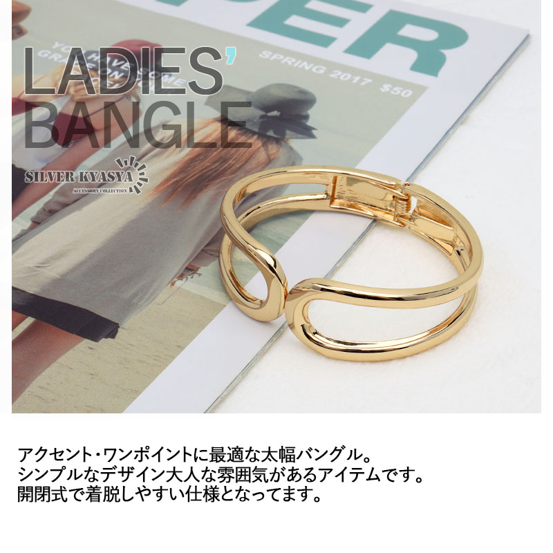 バングル レディース ワイド 幅広 太幅 透け感 大人 腕輪 ゴールド 開閉式 ワイドバングル