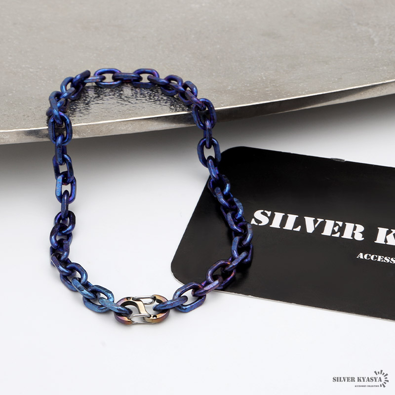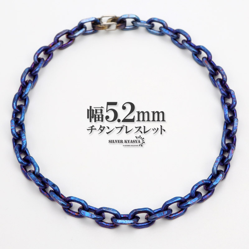 チタン チェーンブレスレット 幅5.2mm あずき チェーン ブレスレット あずきチェーン ブルー 普段使い 金属アレルギー対応 爆買