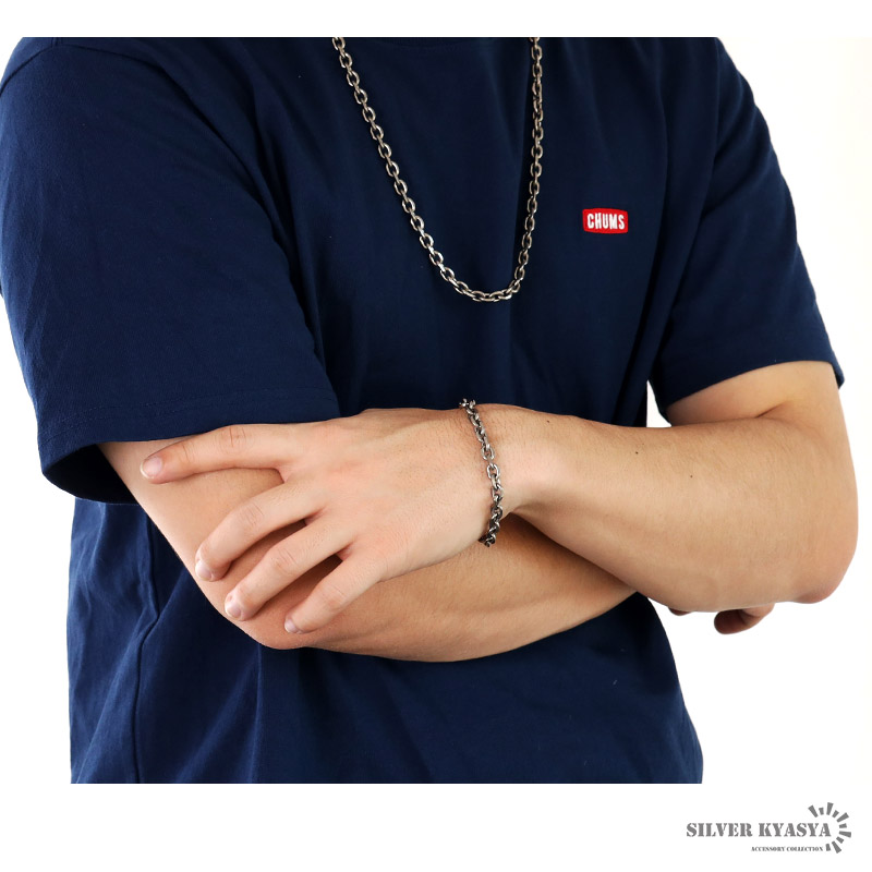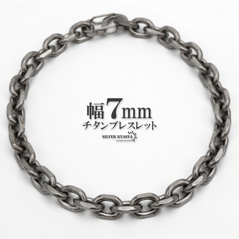 チタン チェーンブレスレット 幅7mm あずき チェーン ブレスレット あずきチェーン シルバー 銀 普段使い 金属アレルギー対応 爆買