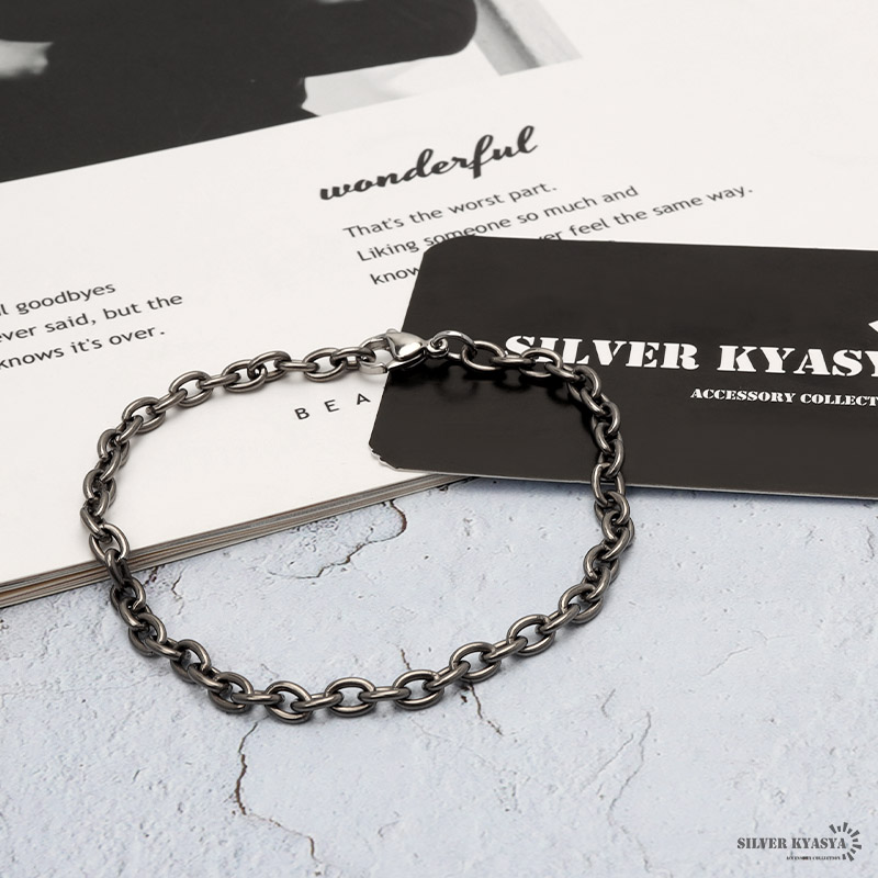 純チタン チェーンブレスレット 幅4mm 細幅 小豆チェーン あずきチェーンブレスレット シルバー メンズブレスレット 爆買