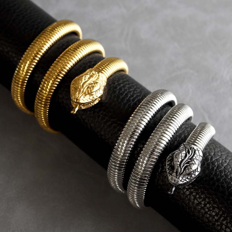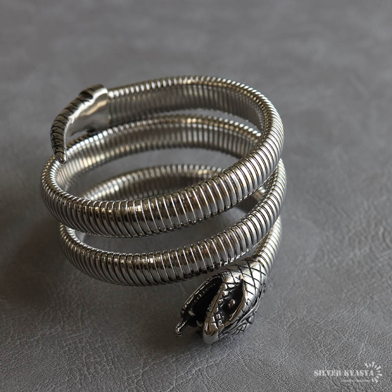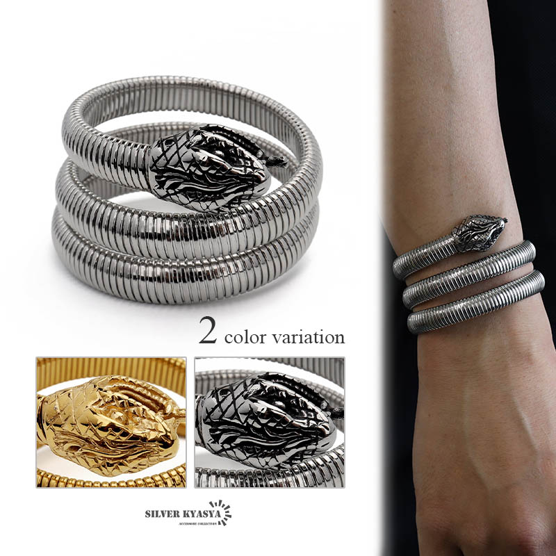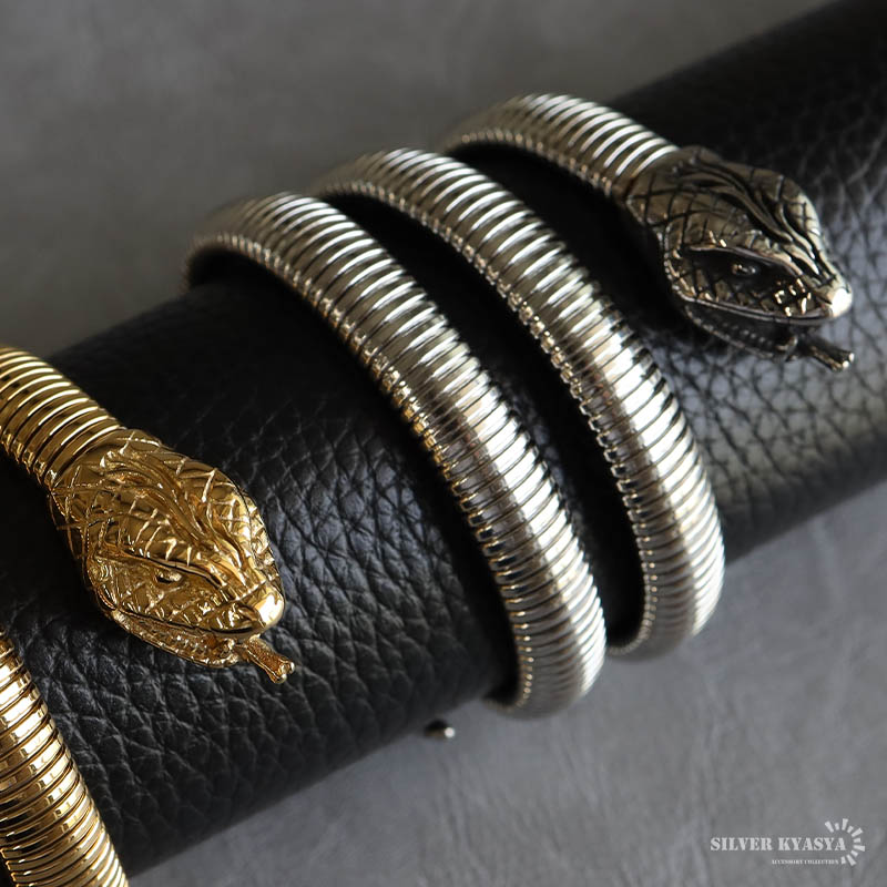 スネークバングル 316L素材 蛇が腕に巻き付く ワイドバングル 蛇 太幅 太めバングル 安心のステンレス製