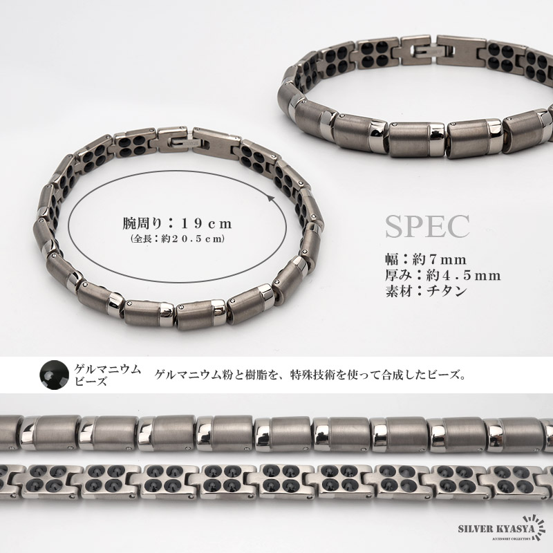 純チタン 60粒 ゲルマニウムブレスレット シルバー Titanium チタンブレスレット 軽い スポーツ 磁力 磁性