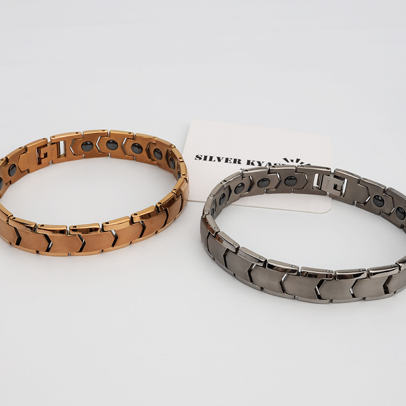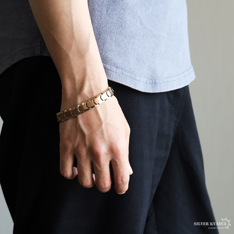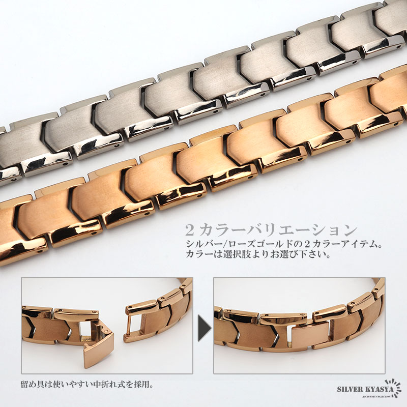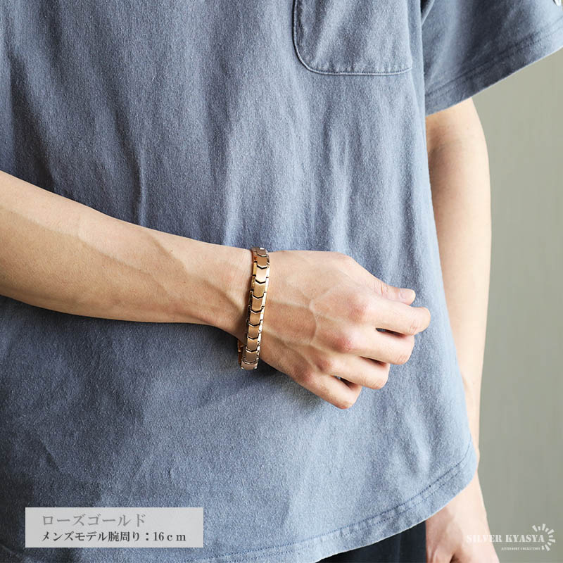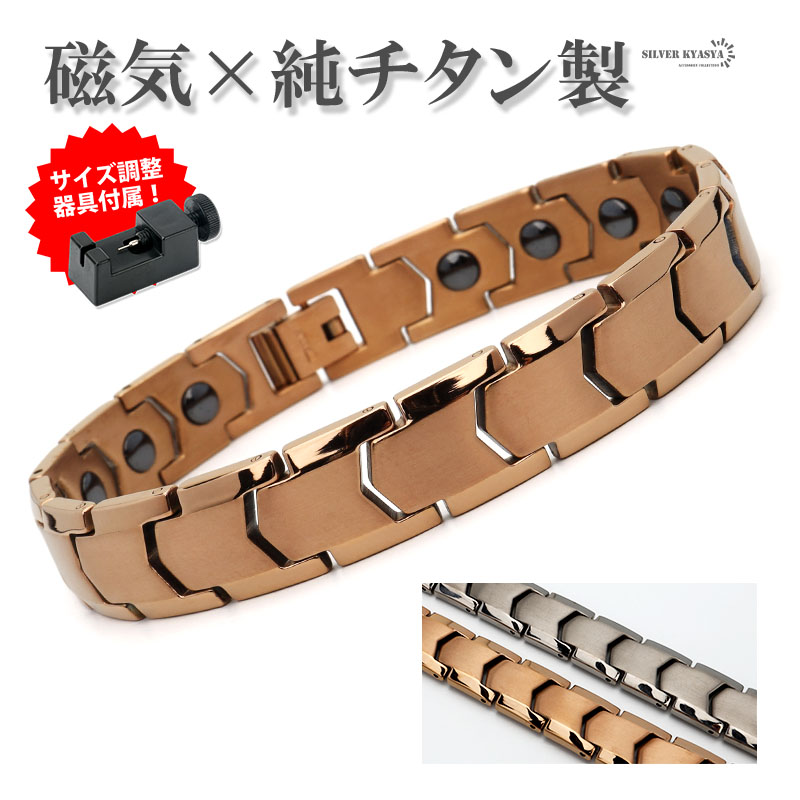 純チタン 磁気ブレスレット シルバー ローズゴールド Titanium チタンブレスレット 軽い チェーンブレスレット スポーツ 磁性 磁力