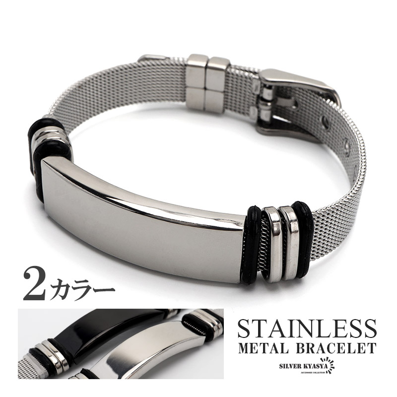 時計ベルト IDブレスレット メンズ シルバー ブラック 黒 銀 ステンレス ベルトブレスレット メンズ ステンレスブレスレット