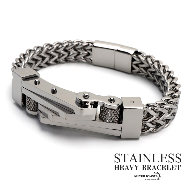 機械美 ごつめ ブレスレット ステンレス メンズ チェーンブレスレット つけっぱなしOK 重厚感 存在感 マグネットブレスレット