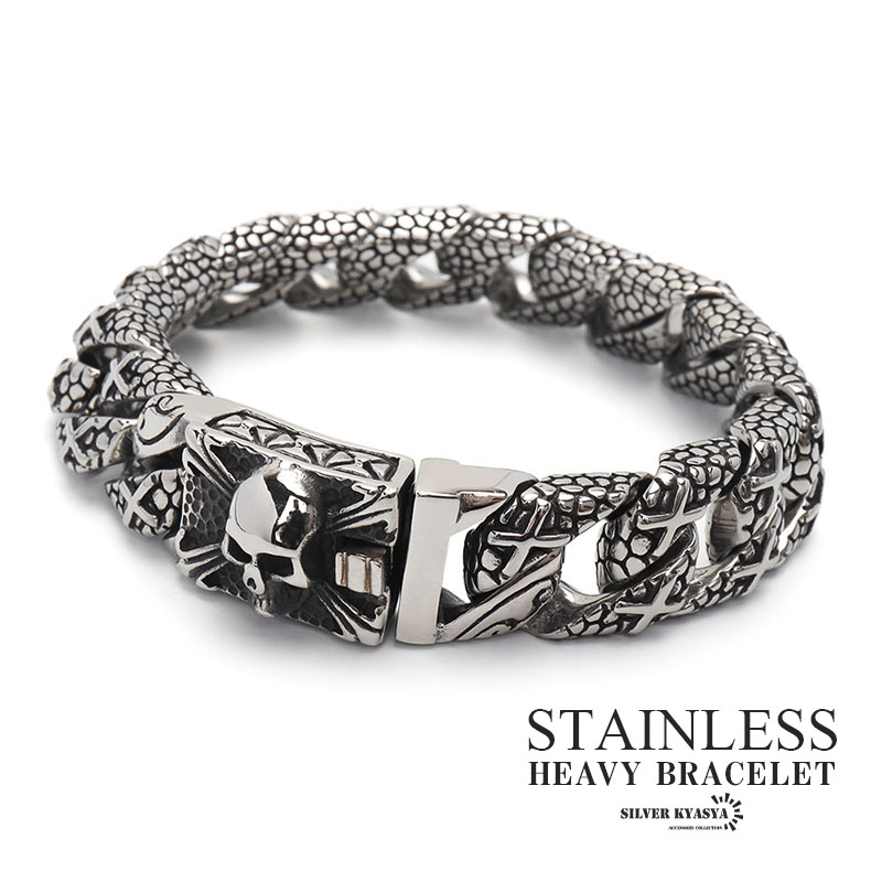 重厚 チェーンブレスレット スカル 喜平チェーン クロスブレスレット ステンレス 316L 喜平ブレスレット ワイドブレスレット