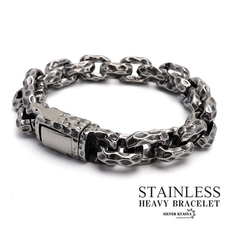 重厚 槌目ブレスレット メンズ チェーンブレスレット アンカーチェーン シンプルブレスレット 槌目 岩石 岩 ステンレス316L