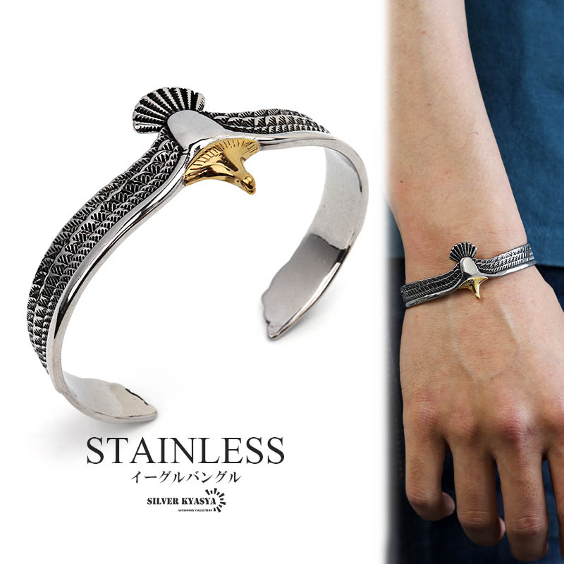 ステンレス素材 イーグルバングル メンズバングル フェザーバングル ブレスレット シルバー ネイティブ インディアン