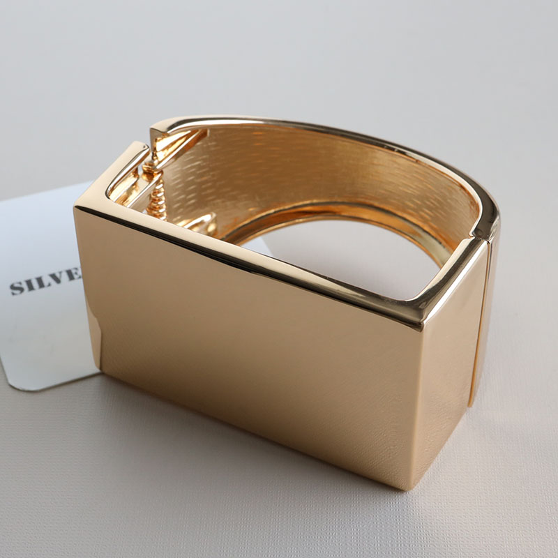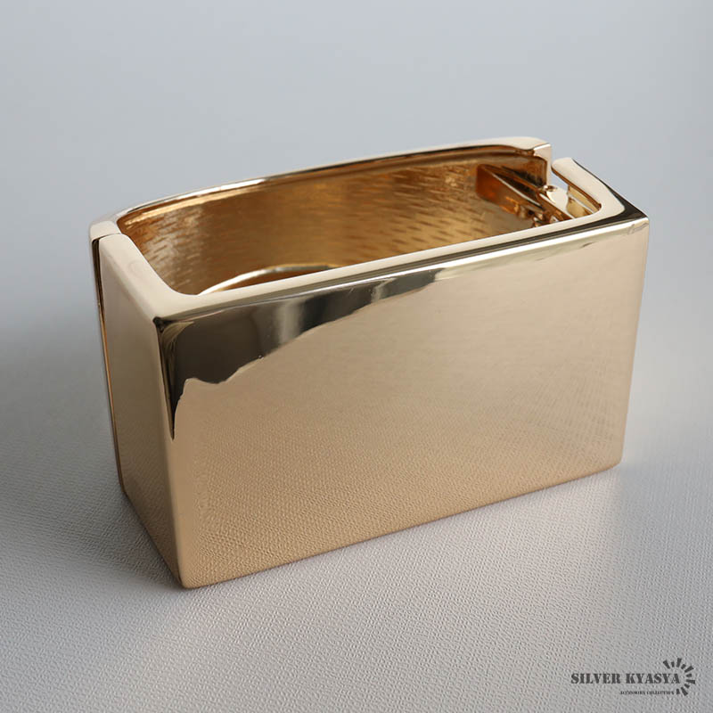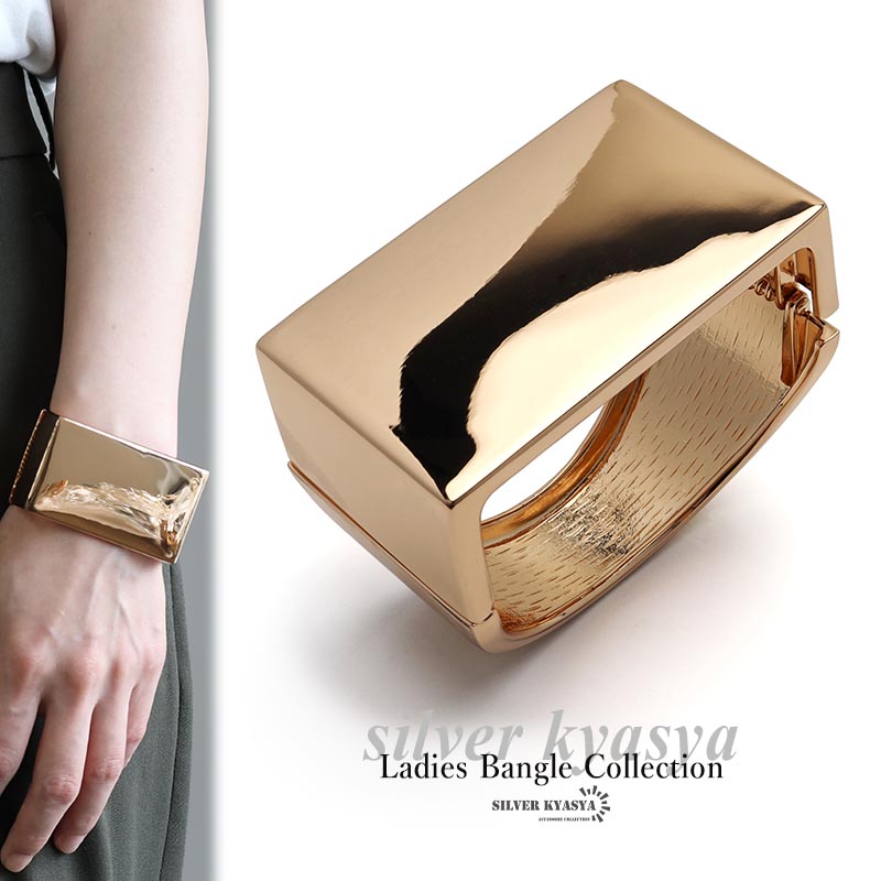 ゴールド スクエアバングル 幾何学バングル 四角 図形 腕輪 開閉式 着脱らくちん ごつめ 太め 幅広 存在感
