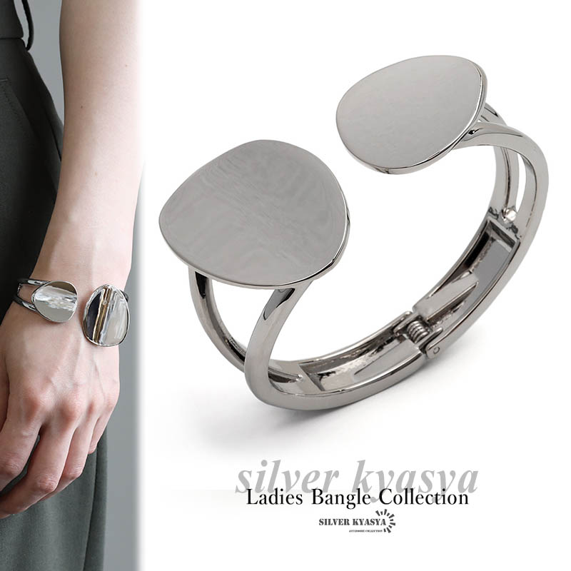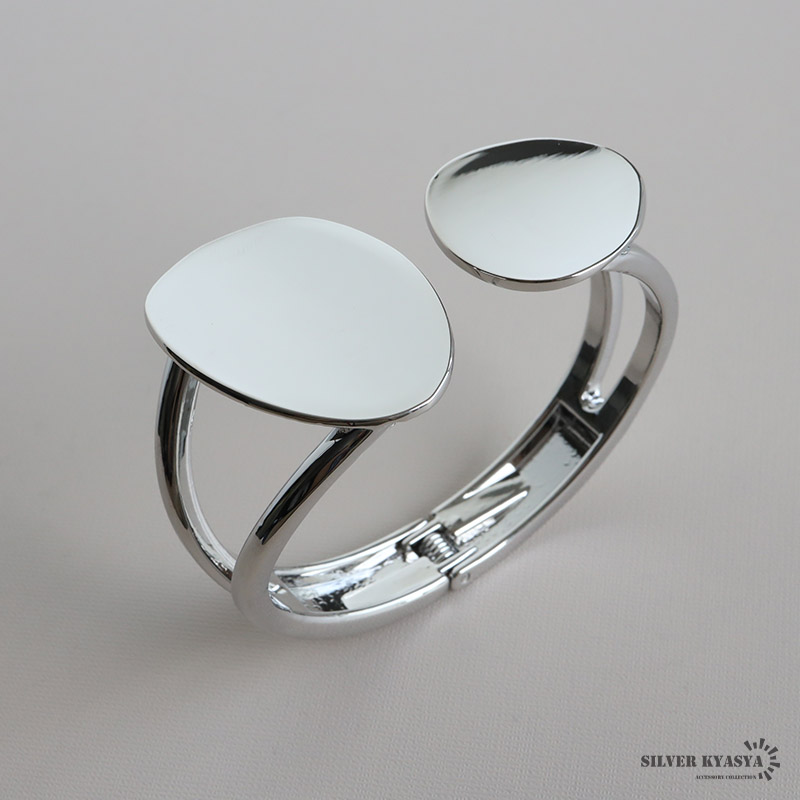 シルバー オーバルバングル 幾何学バングル 楕円 非対称 アシンメトリー 腕輪 開閉式 着脱らくちん ごつめ 太め 幅広