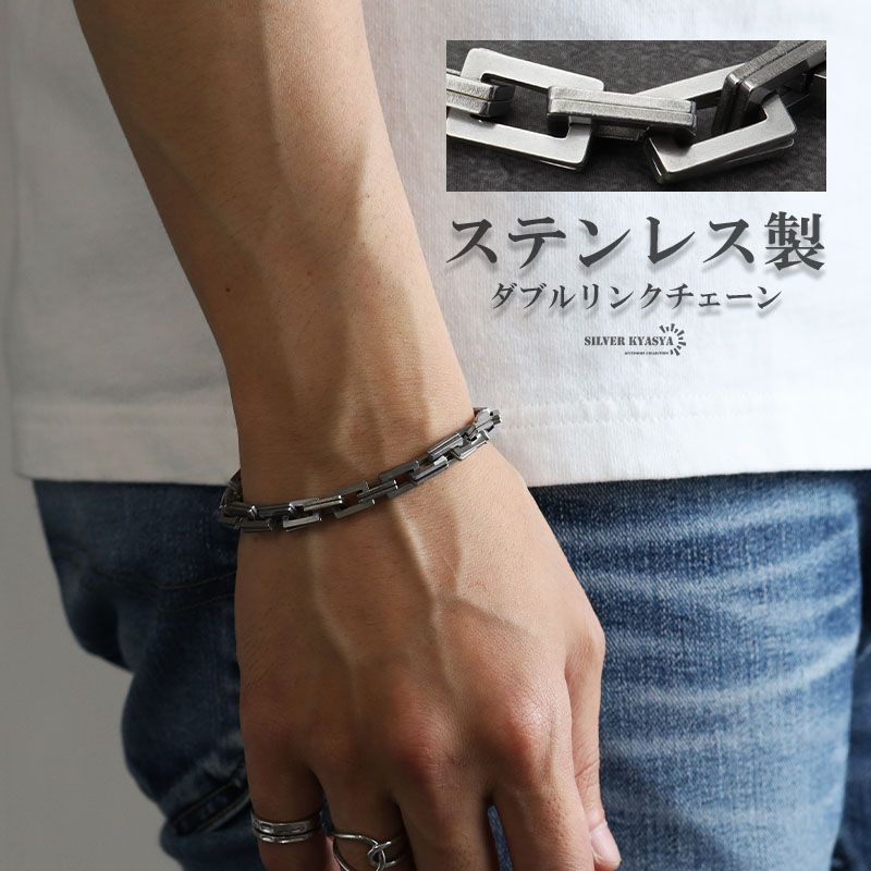 ステンレス ダブルリンクチェーンブレスレット メンズ ごつめ カミソリ シルバー チェーンブレスレット 金属アレルギー対応
