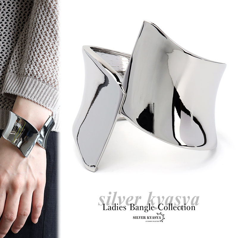 ワイドバングル シルバー 太めバングル 極太バングル ずれ エッジ なめらか 艷やか 大ぶり シンプル